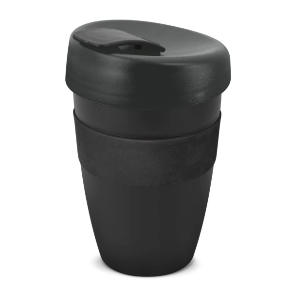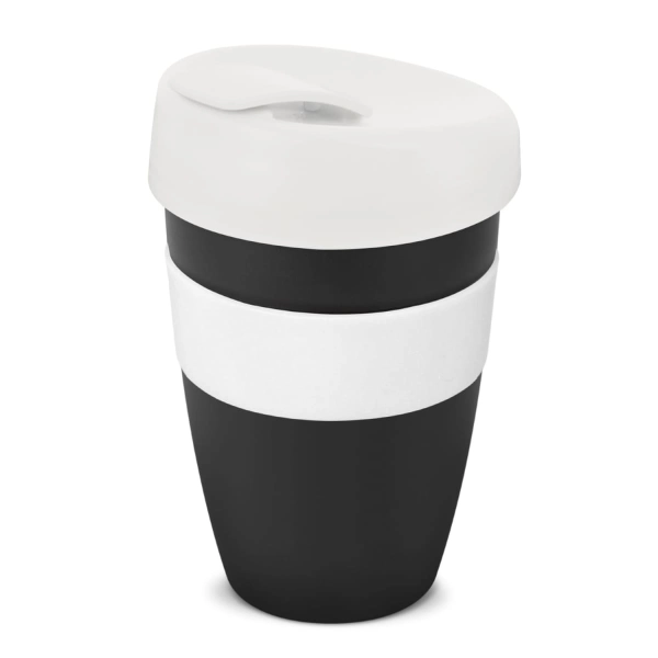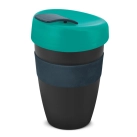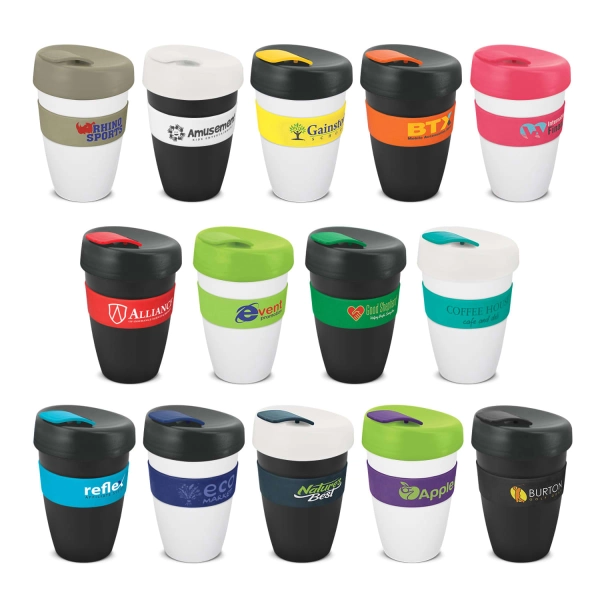 Sophisticated 340ml double wall reusable coffee cup which will keep drinks hot for longer and remain comfortable to hold. It has a decorative silicone band and a secure screw on lid with a splashproof flip closure. Express Cup is manufactured from BPA-free polypropylene which is shatterproof and odour-resistant. The cup, lid, flip closure and silicone band can be mixed and matched in any colour combination from the colour palette at no extra cost. Up to five different colour combinations are included in the price and more are available for an additional charge. An optional natural gift box is available on request. This product is not dishwasher safe and handwashing is recommended. Express Cup Double Wall is protected under New Zealand Design Registration No. 419451 and Australian Design Registration No. 361937.