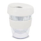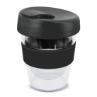 Reusable 230ml double wall coffee cup which will keep drinks hot for longer. It has a silicone band and a secure screw on lid with a splashproof flip closure. The cup is manufactured from crystal-clear AS plastic and the lid is polypropylene. Both materials are BPA-free. The lid, flip closure and band can be mixed and matched in any colour combination from the standard colours at no extra cost. Up to five different colour combinations are included in the price and more are available for an additional charge. An optional natural gift box is available on request. This product is not dishwasher safe and handwashing is recommended. Express Cup Leviosa is protected under New Zealand Design Registration No. 419451 and Australian Design Registration No. 361937.