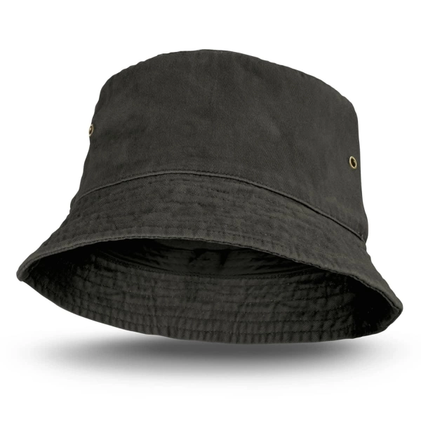 Premium bucket hat which is made from fashionable faded cotton twill with a sweatband and gunmetal eyelets. It is available in two sizes which will fit most people.
