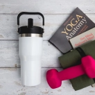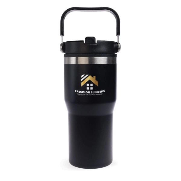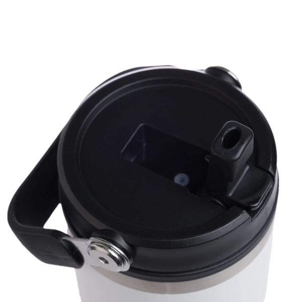 The Faith 620ml Stainless Steel Tumbler, a sleek and durable drinkware option for your daily hydration needs. This double-wall tumbler features a 201 grade stainless steel outer and a black PP liner, ensuring your drinks stay at the perfect temperature. The black screw-in lid includes a black flip-up mouthpiece and a clear straw for easy sipping. Each lid also boasts a stainless steel handle with a black grip for added convenience. Available in matte black and white, this stylish tumbler is perfect for on-the-go use.