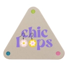 A triangular booklet designed for eco-conscious note-taking. Crafted from recycled milk cartons and measuring approximately 90mm across, this unique booklet features three triangle blocks of regular-sized, vibrant paper notes in Fluro green, Pink, and Blue. At the centre, a larger block made from natural recycled milk cartons provides ample space for more extensive notes. The back proudly displays an embossed logo, emphasizing its origin from recycled milk cartons. Adding a touch of practicality, each corner on the front cover features a 6mm hole, allowing for easy storage or attachment.