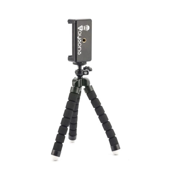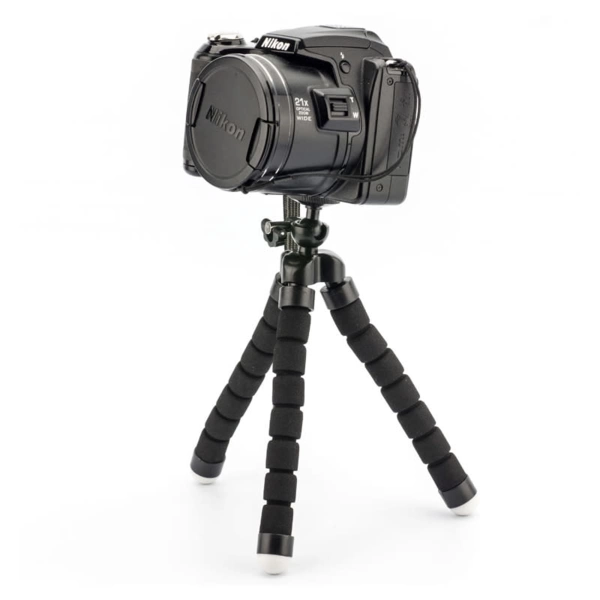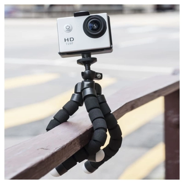 Flex tripod provides super steady capture for your phone or camera. Flexible legs that can bend 360o to wrap around tree branches, railings, furniture on flat or uneven surfaces. Material: ABS, EVA, Metal