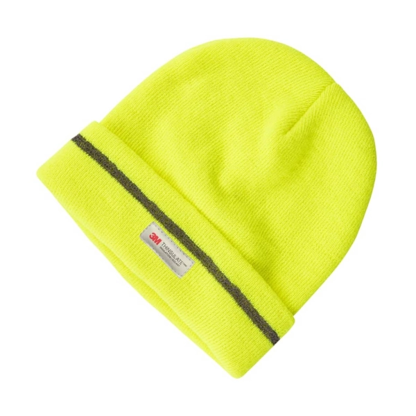Built in reflective stripe | 9 GG Acrylic flat knit beanie | Double layered | Insulated with 3M Thinsulate | Pack with hanging hook | One size fits most