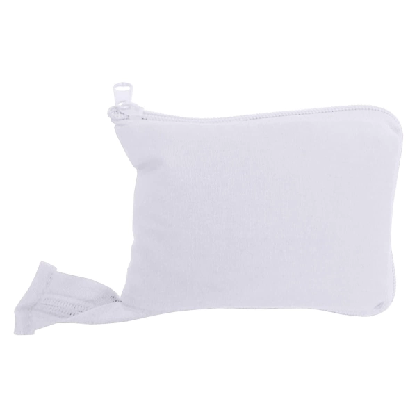 Environmental friendly calico bag with long handles so it can be carried on shoulder it is made of 170gsm cotton and can be folded and zipped into a small wallet size.