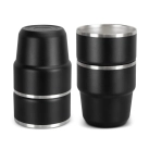 Set of two 300ml stackable double wall cups, perfect for camping and outdoor adventures. Made from durable stainless steel with a tough powder coated finish, these cups are designed to keep your drinks at the perfect temperature. The lightweight, stackable design makes them an essential and convenient addition to any expedition. Presented in a natural kraft box with Frontier branding.