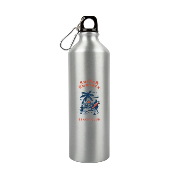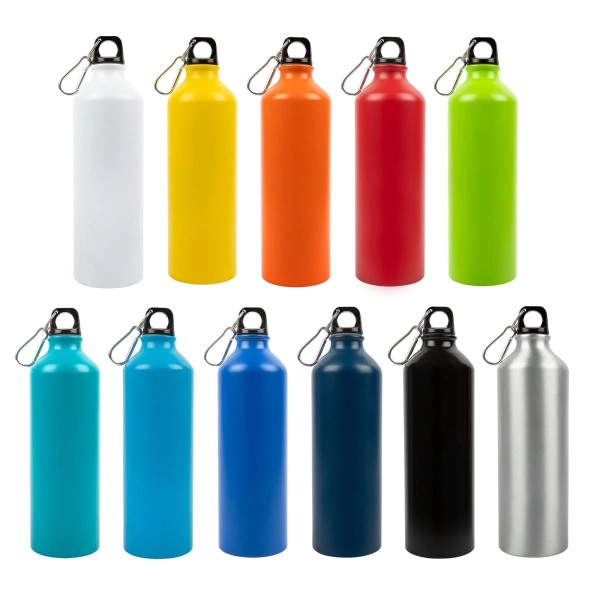 Meet the Gelato Aluminium Drink Bottle LL6996, your stylish and durable hydration solution for active lifestyles. This 750ml aluminium bottle features a sleek black screw-in lid for secure closure. Equipped with a silver aluminium carabiner attached via a split ring to the lid, it offers convenient portability. This bottle resists shattering, odours, and stains, ensuring long-term use. Perfect for cold beverages, it's not suitable for carbonated liquids or freezing. For lasting logo brilliance, hand washing is recommended.