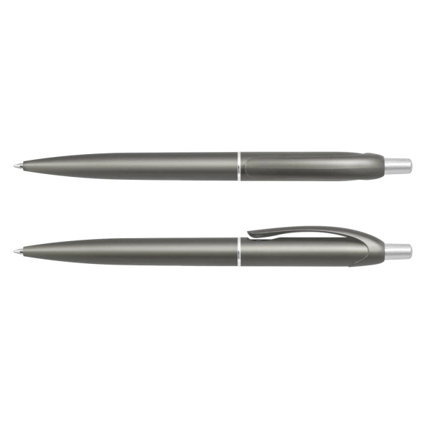 Retractable plastic ballpoint pen with a metallic barrel and shiny chrome accents. It has a black refill with 1200 metres of German manufactured Dokumental ink and can be presented in an optional pen sleeve.