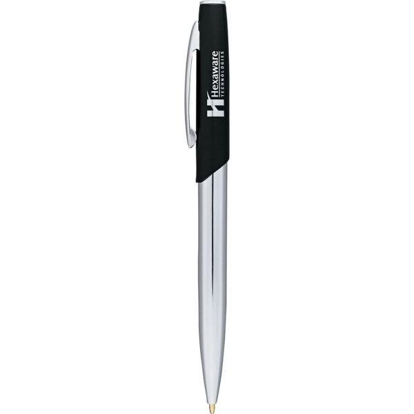 Sophisticated silhouette features matte upper barrel with shiny chrome lower barrel and matching chrome accents. Pen includes premium black ink cartridge.