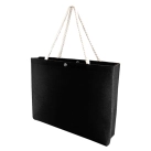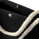 A fashion shopping bag is made of 3mm thick quality black felt fabric which is a durable moisture-repellent and heat-insulating material. Smart design comes with 2 comfortable thick rope shape handles and a top bottom closure. A great promotional bag for corporate events.