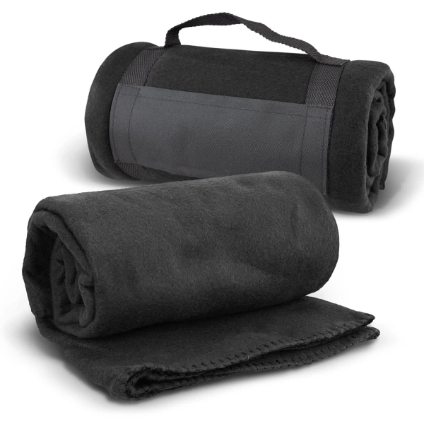 Super warm 1200mm x 1500mm soft fleecy blanket which is presented in a smart woven carry strap that has secure Velcro fasteners and a large area for branding. The blanket is manufactured from 240gsm polar fleece material with neatly stitched edges and is ideal for use at home or any outdoor event.