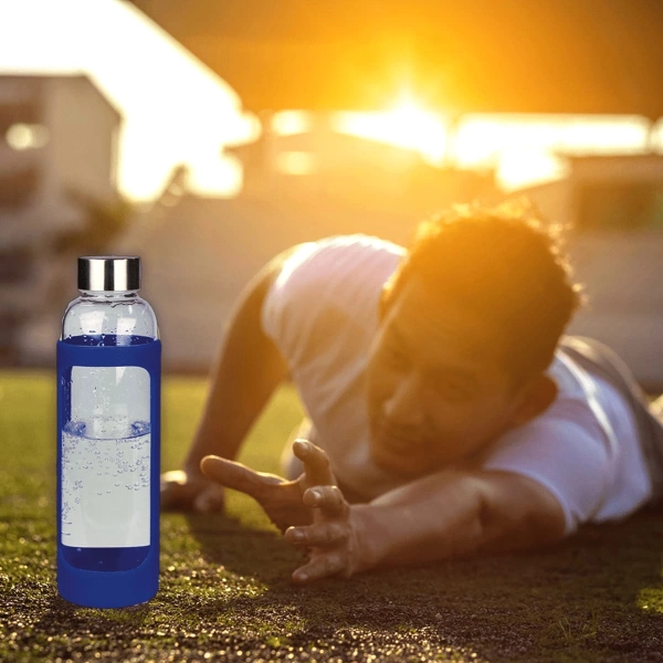 This single walled glass sports bottle comes with an outer silicone sleeve for protection. BPA free sipper. 500ml capacity. Available in 2 colours