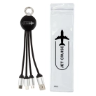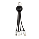 This 4 in 1 this cable provides a convenient solution for charging multiple devices with different connectors. The illuminated round top section serves as an indicator that the cable is plugged in and that the connected device is charging. Connectors are Type C, Micro USB, 8 Pin power out, USB A & Type C power in. The braided cable and silver connectors add a touch of durability and style. This type of cable is useful when the only requirement is to charge the device, no data transfer.