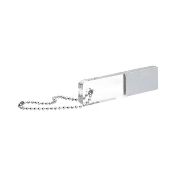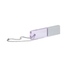 Slim aluminium USB flash drive with acrylic light up top part. The top part light up when the flash drive is inserted in a USB portal. Materials Arcylic, Aluminium. The LED is white