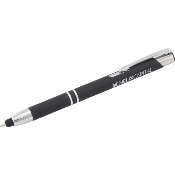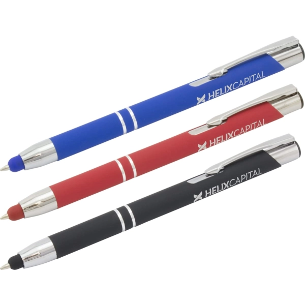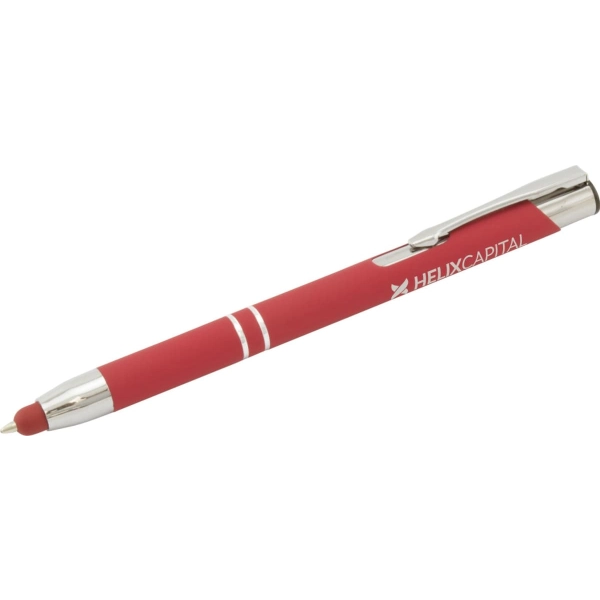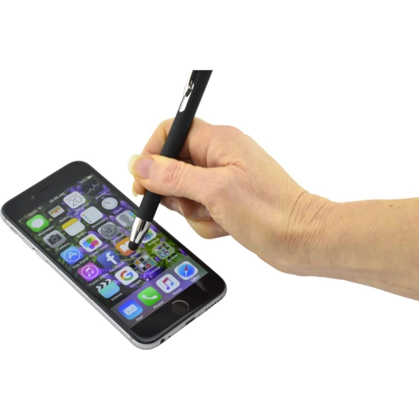 This stylus pen features a soft-feel rubber coating, chrome trim and colour coordinated stylus.