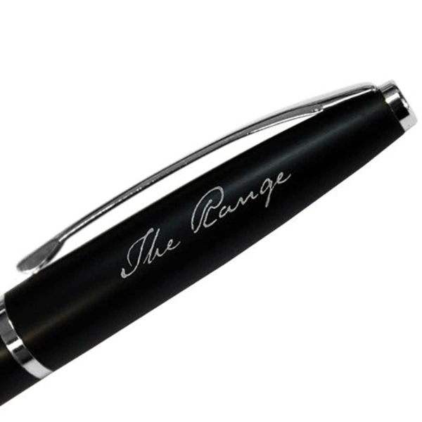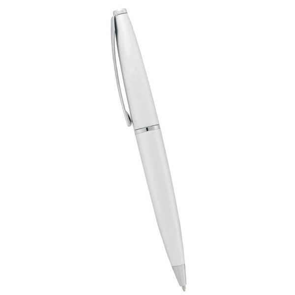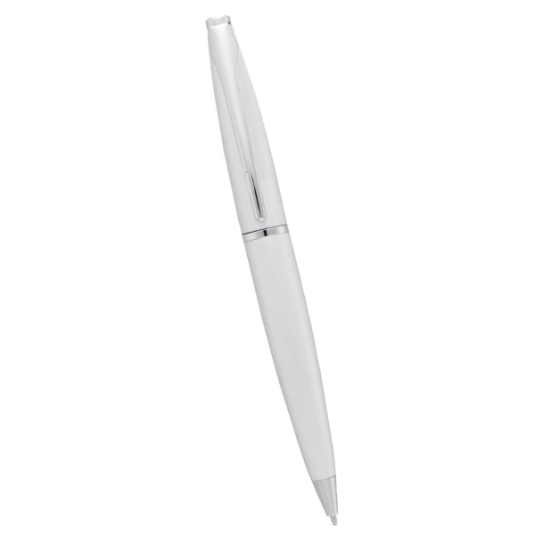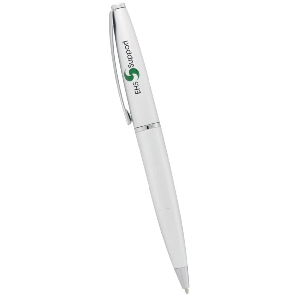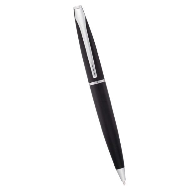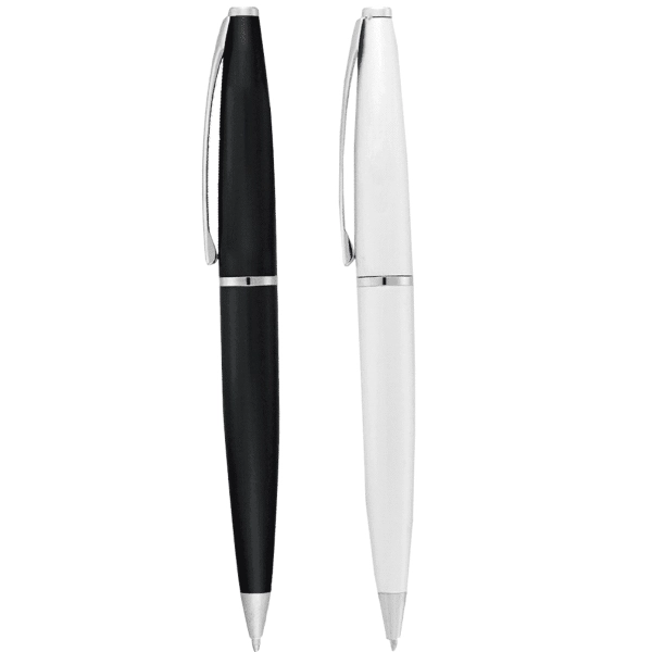 Metal twist action ballpoint pen. Supplied with black ink. Available in 4 colours.