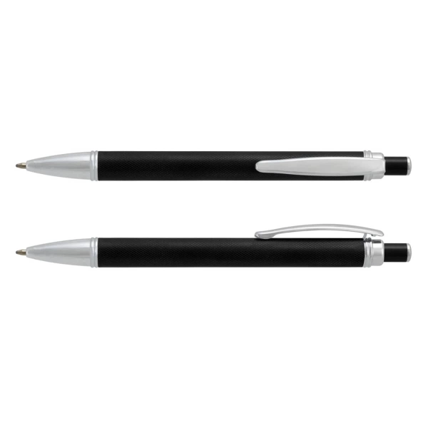 Retractable aluminium ball pen featuring a gloss anodised barrel with a unique guilloche textured finish. It has 800m of black German manufactured Dokumental ink and can be presented in an optional pen sleeve.