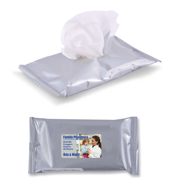 Introducing H2O Wet Wipes, a convenient and refreshing way to stay clean on the go. Each silver pouch contains 10 citrus-scented antibacterial hand wipes. These alcohol-free wipes are perfect for use in offices, cars, travel bags, or any time you're on the move. The resealable sticker ensures they stay fresh and ready to use whenever you need them.