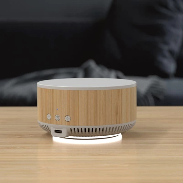 The Hampton, with its soft under-body glow ring and Type-C input, combines the features of a 15 Watt wireless charger and 3 Watt Bluetooth speaker into one compact desktop item. First, pair your device and listen to your favourite music inside or out. Then, connect this speaker to any 5 Volt (DC) power source to start charging your smartphone. With Foreign Object Detection and temperature control circuitry, the Hampton is compatible with any device meeting the Qi wireless charging standard. Includes a Type-C charge cable and user manual. Material: ABS, Bamboo.