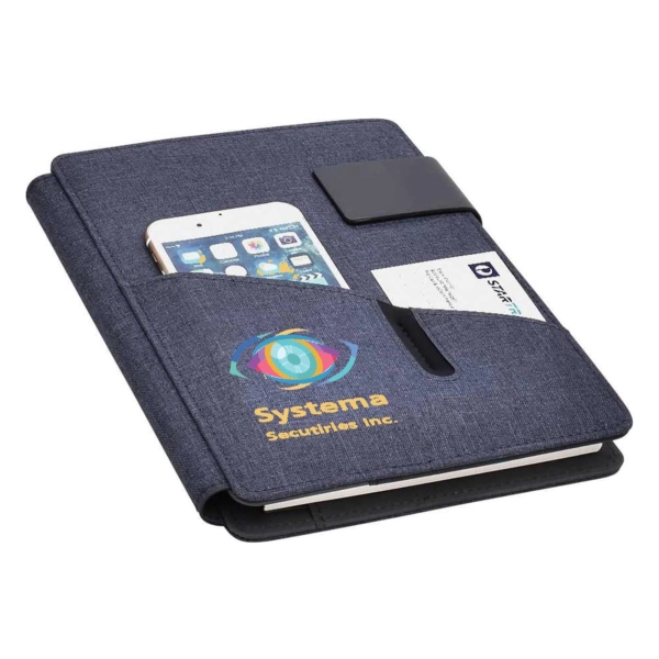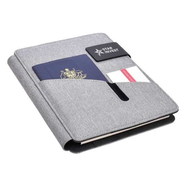leather-look magnetic closure and is supplied with a ruled, side folding notepad. Available in grey, navy or black. (Accessories not included)