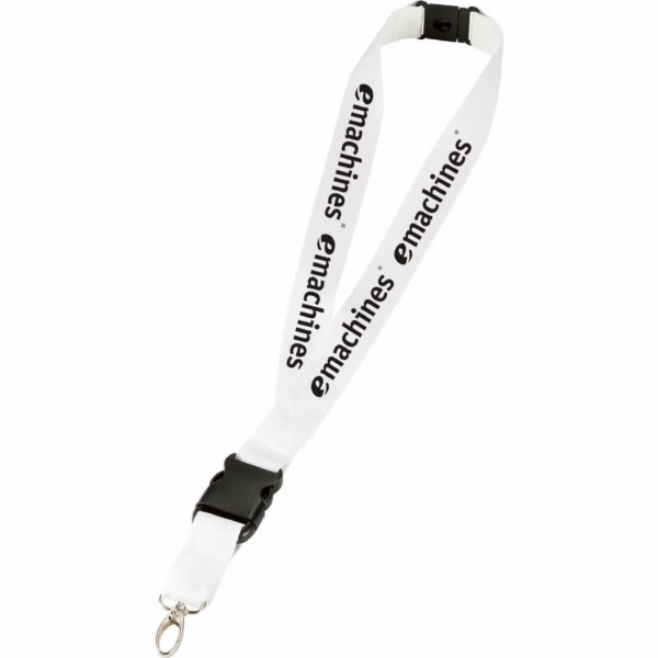 1-inch wide and 20-inch long lanyard includes breakaway neck clip and detachable plastic clip with wide metal swivel hook. Second location setup & run charge waived if both sides decorated with same artwork. Clear PVC Badge Holders available at additional charge. Optional Badge holders not available for imprint. Optional Badge holders packed separately.