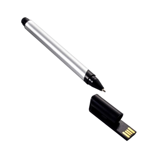 Stylish metal USB pen with a large branding area and incorporating a soft stylus for working on your smart phone or tablet, writing instrument, Grade A memory, 10 Year warranty on data retention, 1 year replacement warranty on faulty manufacture. Black ink which writes for 500 metres