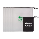 5 mesh drawstring bags in a drawstring polyester pouch. Extra large bags measure 320mmL x 360mmH. Great for a zero waste lifestyle as cuts down on single use plastic consumption. Perfect for fruit, vegetables, herbs and bulk goods. Suitable for rinsing your produce in the bag and keeping in the fridge. Air flows through the mesh weave allowing produce to breath and stay fresh longer. Multifunctional as can be used as transparent storage for travel and household items. Eco Credentials: Reusable, sustainable, and printed using renewable energy.