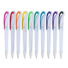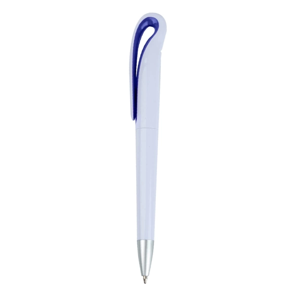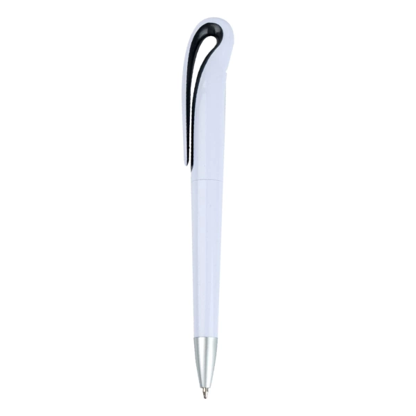 Twist action European style plastic pen white barrel with shiny silver chrome tip an eye catching stylish unique design clip a great promotional pen for your corporate logo or next event. It has high quality German manufactured black ink refill 1800 meters writing distance tungsten carbide ball provides you with quality writing.