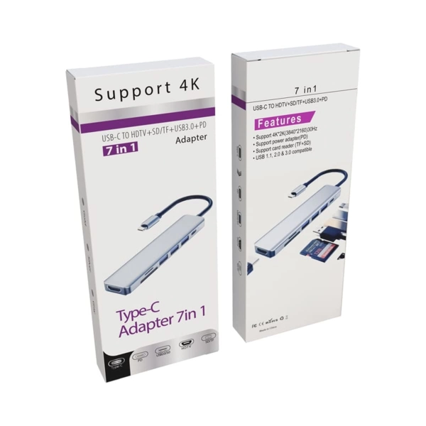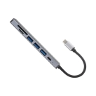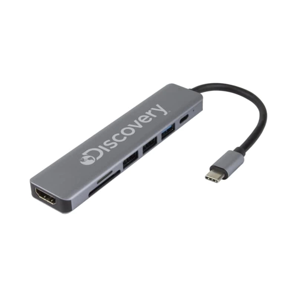 The Hayden Type-C Hub is a compact device designed to expand the connectivity options of your laptop. Featuring a USB Type-C input, the Hayden offers endless possibilities with 1 x USB Type-A port (USB3.0), 2 x USB Type-A ports (USB2.0), 1 x HDMI display output, and 1 x USB Type-C power delivery (PD100W) charging port, along with 1 x TF card reader and 1 x SD card reader. The HDMI port supports HDTV video transmission with a resolution of up to 4K, while the USB ports provide speeds of up to 5.0 GB/s. The Hayden is an ideal solution for increasing productivity. Its Aluminium enclosure offers a sleek, premium look and durability, ensuring resistance to daily use and travel. It is compatible with MacBook, Windows-based laptops, and Android smartphones. Material: ABS, Aluminium.