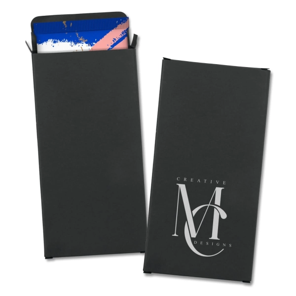The small Hazel Chocolate Gift Box offers a stylish, simple way to customise chocolate blocks for branded gifts or kitting. Made from durable 300gsm black kraft card, it can be branded with your logo or message using a one-colour screen print. Perfect for enhancing any chocolate gift experience, this box leaves a lasting impression.