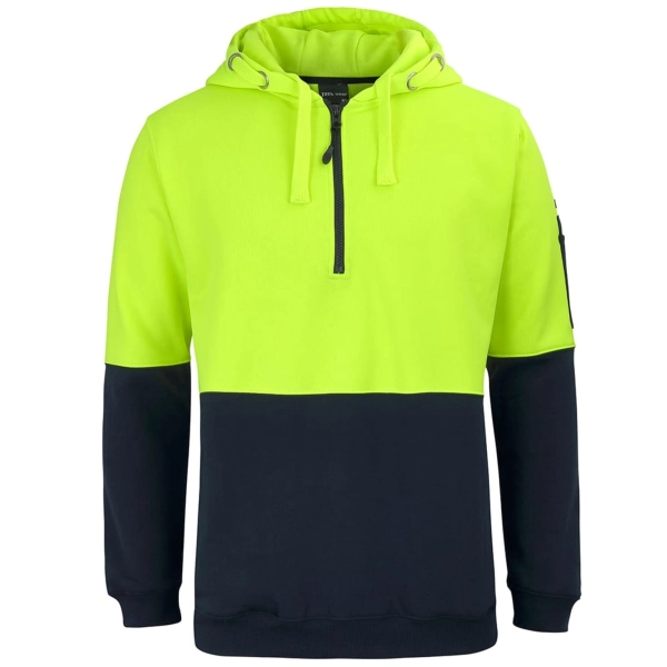 Classic fit | 80% Polyester for durability and 20% cotton for comfort | 280gsm fleece fabric | Contrast panel at body and sleeves | Rib hem and sleeve cuff | Hood with drawcord | Two side pockets and pen pocket on sleeve | Complies with standards AS/NZS 1906.4: 2010 and AS/NZS 4602.1:2011 Day only | Complies with Standard AS 4399:2020 for UPF Protection (UPF 50+)