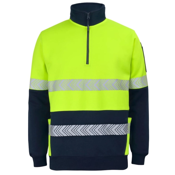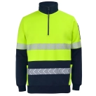 Classic fit | 80% Polyester for durability and 20% Cotton for comfort | 330gsm heavy fleece fabric | Contrast panel at body and sleeves | Two side insert pockets | Two additional side pockets with pen insert | Rib hem and sleeve cuff | Pen pocket on sleeve | Complies with standards AS/NZS1906.4:2010 and AS/NZS 4602.1:2011 Day and Night | Complies with Standard AS 4399:2020 for UPF Protection (UPF 50+) | Arrow style stretch segmented reflective tape design