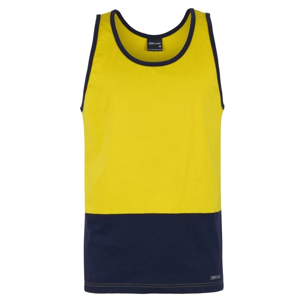 Classic fit | 100% Cotton for comfort, 190gsm fabric | Contrast dust panel at front | Straight hem | Contrast binding on neck and armhole | Complies with Standards AS/NZS 1906.4:2010 and AS/NZS 4602.1:2011 Day only
