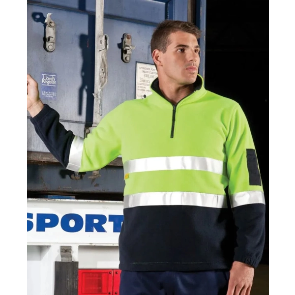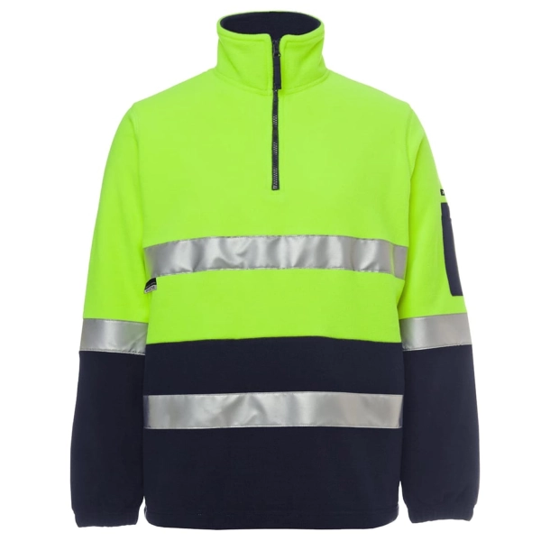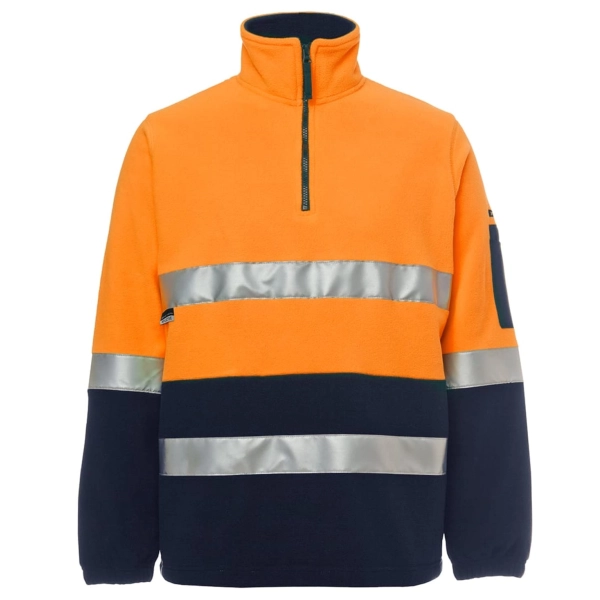 Classic fit | JB's reflective tape stands up to 50 times domestic wash | 100% Polyester for durability | 280 gsm low pill polar fleece fabric | Contrast panel at sleeves and lower front body | Two inseam side pockets and pen pocket on sleeve | Complies with Standard AS/NZS 1906.4:2010 and AS/NZS 4602.1:2011 Day and Night | Complies with Standard AS 4399:2020 for UPF Protection (UPF 50+) | Easy care fabric