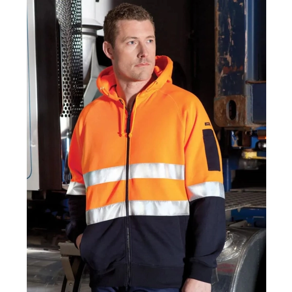 Classic fit | 80% Polyester for durability, and 20% Cotton for comfort | JB's reflective tape stands up to 50 times domestic wash | 280gsm fleece fabric | Contrast panel at body and sleeves | Rib basque sleeve cuffs for improved durability | Hood with drawcord | Easy care fabric | Two side pockets and pen pocket on sleeve | Complies with Standards AS/NZS 1906.4:2010 AS/NZS 4602.1:2011 Day and Night | Complies with Standard AS 4399:2020 for UPF Protection (UPF 50+)