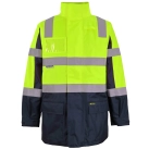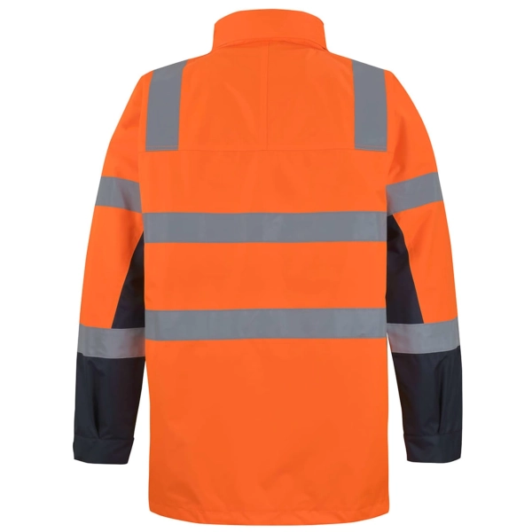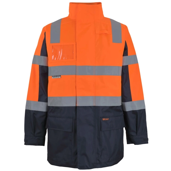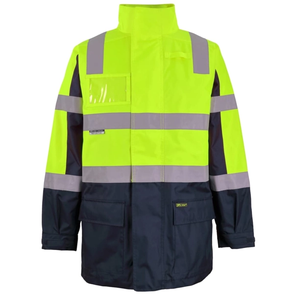 Urban fit | 300D Polyester Oxford shell fabric with PU Coating | Waterproof rating 20,000mm with sealed seam | 100% Polyester microfleece body lining | 100% Polyester taffeta lining on sleeve | Reflective tape on body and sleeve | Concealed hood inside collar, hood has clear panel for extra visibility | Wind flap with hook pile closure | ID patch pocket at right hand chest, tab on left hand chest | Internal zipper opening for embroidery access | 2 front patch pocket | Hook pile tape tab on sleeve for secure fit | Complies with AS/NZS 1906.4:2010 and AS/NZS 4602.1:2011 Day and Night | Complies with Standard AS 4399:2020 for UPF Protection (UPF 50+)