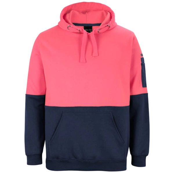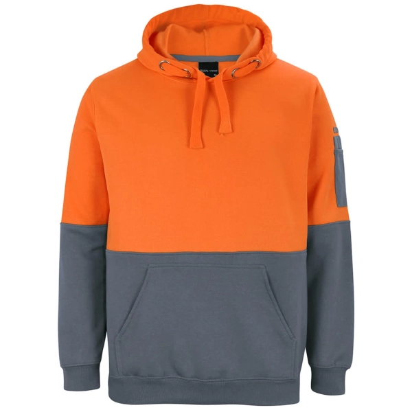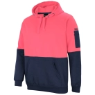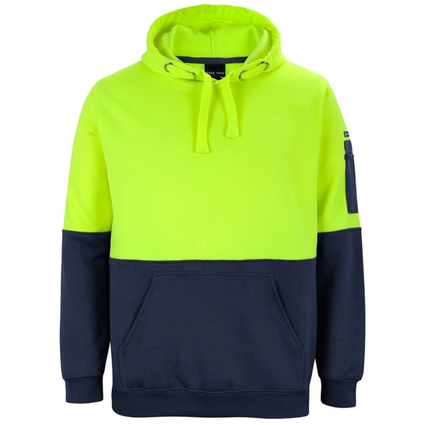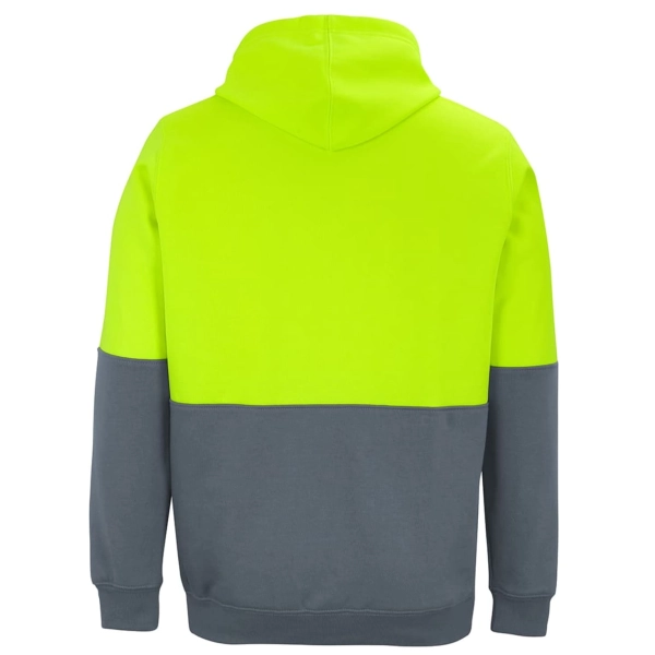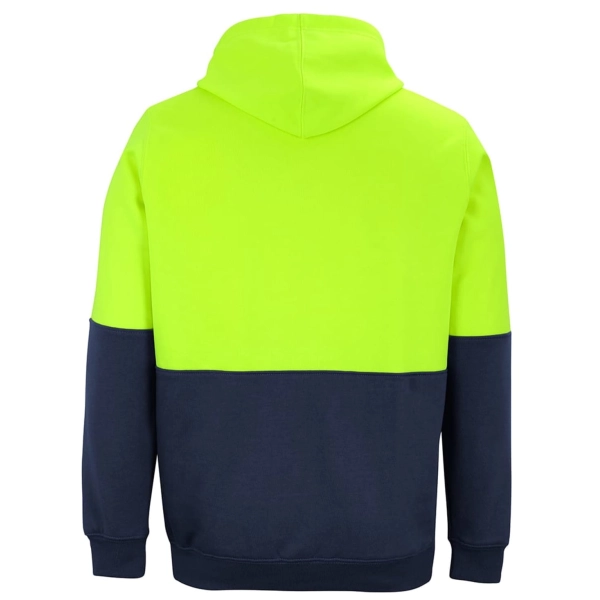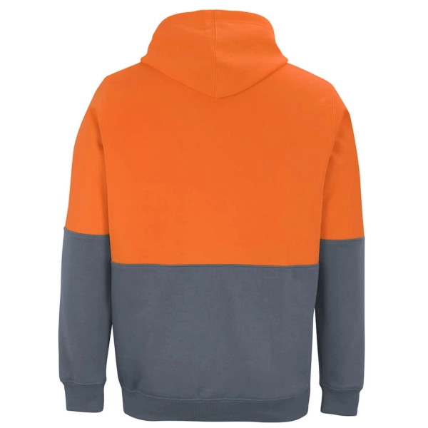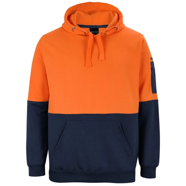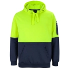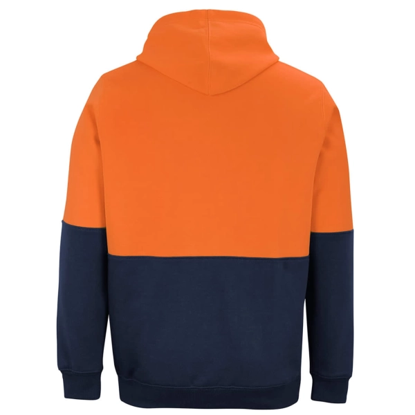 Classic fit | 80% Polyester for durability, 20% Cotton for comfort | 280gsm Fleece fabric | Contrast panel at body and sleeves | Rib Basque sleeve cuffs and bottom hem for improved durability | Kangaroo pocket on C.F and pen pocket on sleeve | Complies with standard AS/NZS 1906.4:2010 and AS/NZS 4602.1:2011 Day Only | Complies with Standard AS 4399:2020 for UPF Protection (UPF 50+) | Hood with drawcord | Easy care fabric | 2XS, 6/7XL only in Orange/Navy & Lime/Navy
