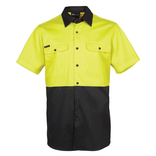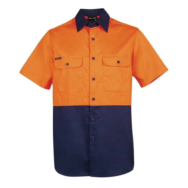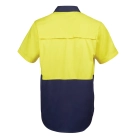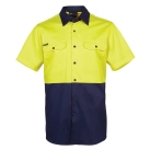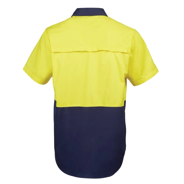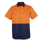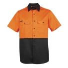 Classic fit | 100% Cotton for 100% comfort in a 150gsm double pre-shrunk drill | Complies with Standard AS 4399:2020 for UPF Protection (UPF 50+) | Complies with Standards AS/NZS 1906.4:2010 and AS/NZS 4602.1:2011 Day Only | Wide back neck yoke with concealed mesh, cooling gussets at underarms | Two front pockets with button-down flaps and pen insert | Contrast panel on front, back and collar | Curved hem with back tail styling | Two-piece collar
