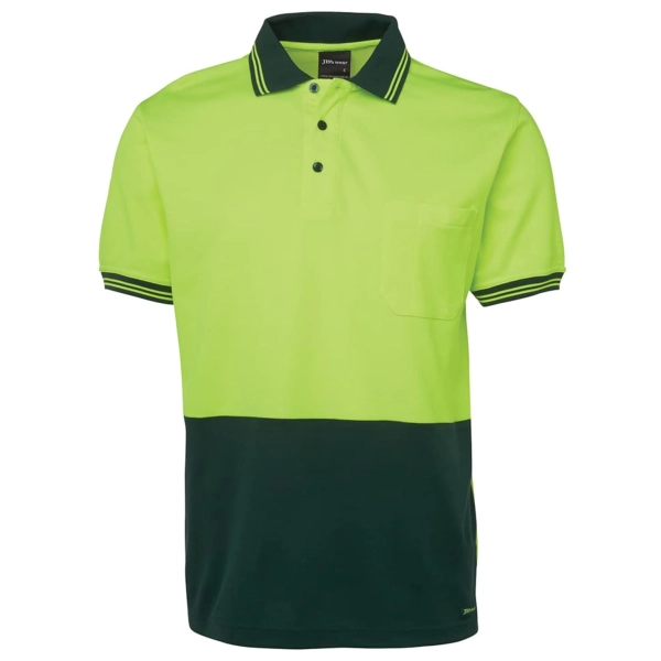 Classic fit | 55% Cotton for comfort, and 45% Polyester for durability | 170gsm Cotton rich micro mesh fabric | JB’s Dri™ moisture wicking fabric designed to help keep you cool and dry | Complies with Standard AS 4399:2020 for UPF Protection (UPF 50+) | Complies with Standards AS/NZS 1906.4:2010 and AS/NZS 4602.1:2011 Day Only | Reinforced chest pocket with pen insert | Straight hem with side splits | 6/7XL only in Lime/Navy
