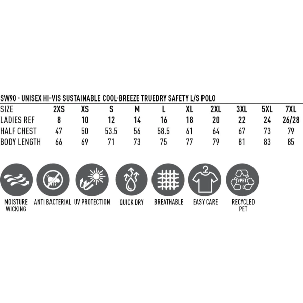 Hi-Vis Sustainable Cool-Breeze Truedry Safety L/S Polo