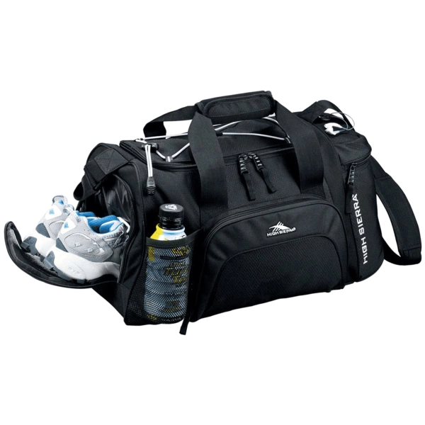 High Sierra sports duffel bag with a large main compartment with U-shaped opening.