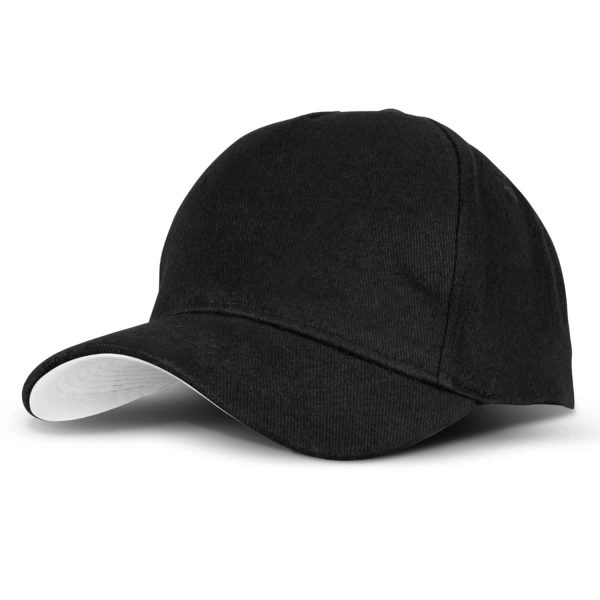 Premium quality structured five panel cap which is made from 100% cotton. It features a pre-curved peak with coloured trim, embroidered eyelets, a sweatband and an adjustable Velcro closure which allows one size to fit most people.
