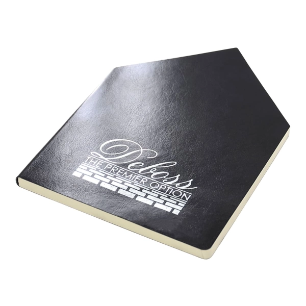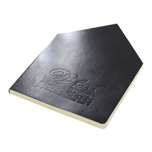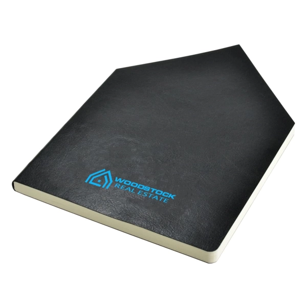 The House A5 Notebook is a perfect gift for the real estate, construction and home services industries. Crafted in the shape of a house, this notebook features a leather-feel soft cover, stylish “flush-cut” design and 160 pages of lined cream paper. These notebooks are available in Black with decoration options such as Pad Print, Deboss or Gold/Silver Foil Printing. If you’re after a debossed notebook, check these out!