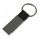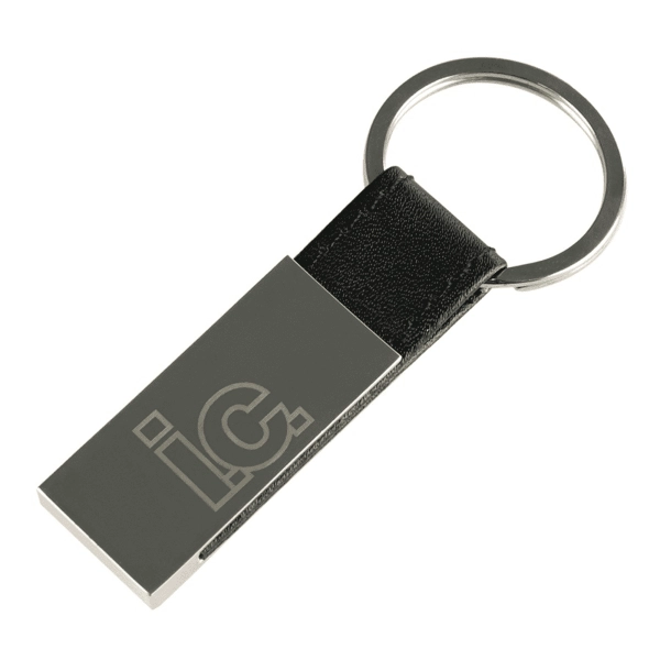This sleek silver keyring is made from metal and features a black PU leather strip for a stylish contrast. Designed with a screw detail on the back, it offers a modern and durable accessory for everyday use.
