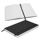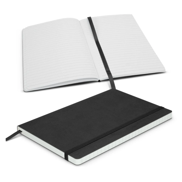 Affordable medium-size (approximately A5) notebook with a soft PU cover which thermo debosses to a stunning two-tone finish. It has 80 leaves (160 pages) of 70gsm lined paper, a bookmark ribbon and an elastic closure band.