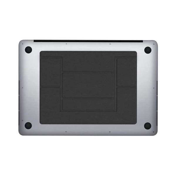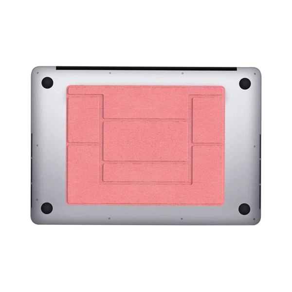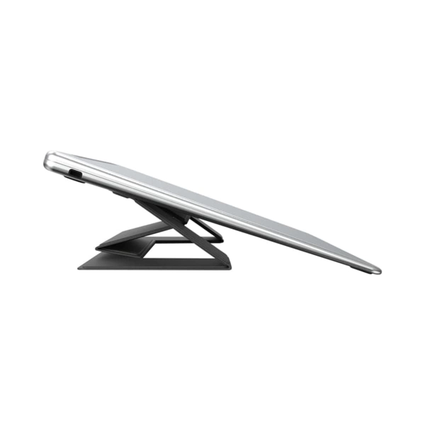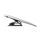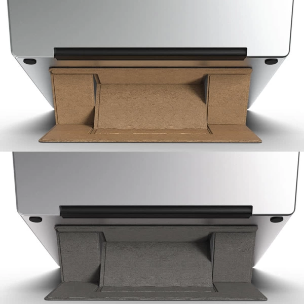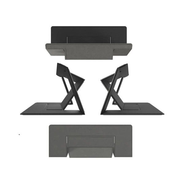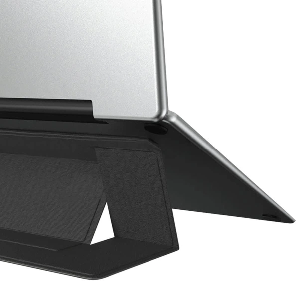 This ultra-slim laptop stand is easily applied to the underside of a laptop or tablet with reusable adhesive. Suitable for tablets as well as 15.6” laptops this stand will hold a weight of 10 kgs and provides the user with two adjustable viewing heights. When finished working this stand folds flat on the rear of your device for hassle free storage in your backpack or briefcase. Material: PU, Plastic.