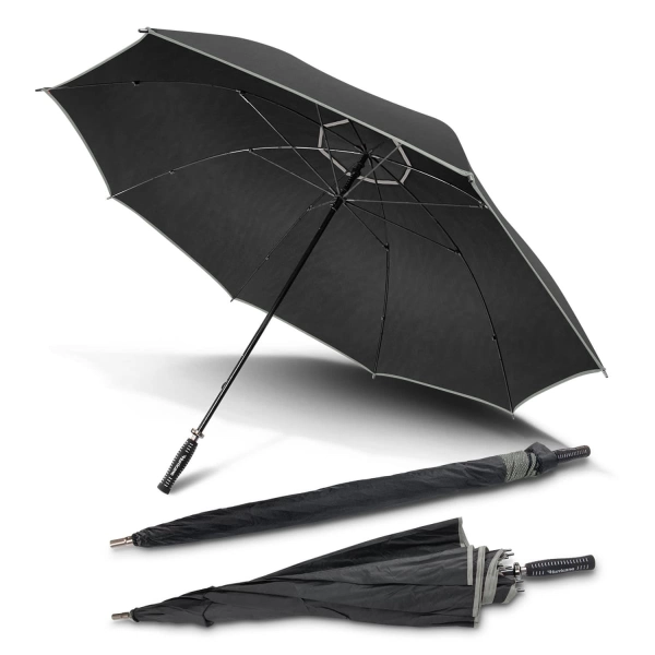 The Sport Umbrella is part of the premium Hurricane range and is built to last in all conditions. The eight-panel pongee canopy is vented and is supported by a fibreglass shaft and 78cm fibreglass ribs with built-in guide ropes for added reinforcement. It has a matching pongee carry sleeve with mesh detailing and a moulded rubber handle.