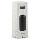 Exceptional 500ml Borosilicate glass and stainless steel vacuum bottle from XD Design which has a secure screw on lid. The stainless steel outer provides additional insulation, maintaining drink temperatures for longer and ensuring the bottle remains comfortable to hold. The black bottle laser engraves to a shiny steel finish. Hybrid is BPA-free and beautifully presented in an XD Design gift box. This product is not dishwasher safe and handwashing is recommended.