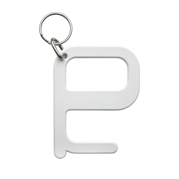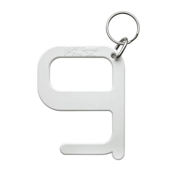 A simple but effective hygiene tool that allows the user to open doors and push buttons without any direct contact with hands. Manufactured from strengthened materials for extra durability. This product contains Biomaster antimicrobial technology that provides protection against the growth of harmful micro-organisms for the lifetime of the product. Supplied as a keychain. 98% ABS Plastic and 2% Antibacterial additive.