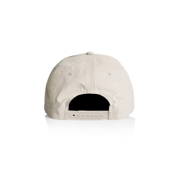 The Icon Nylon Cap is a mid-profile, six-panel snapback made from 100% recycled nylon. Features a curved peak, quick-dry fabric, tonal under-peak, and tear-out label.