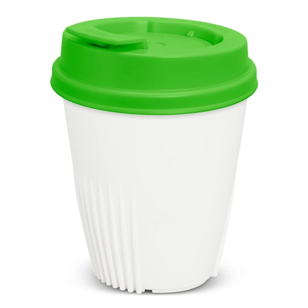 Designed to reduce waste caused by single-use cups and lids, IdealCup is the first reusable coffee cup to be conceptualised and manufactured in New Zealand. This 355ml cup is manufactured from BPA-free polypropylene and features ergonomic fins around the cup to disperse heat, allowing the cup to be carried comfortably on the go. IdealCup's secure lid is manufactured from BPA-free polyethylene and sports a smart rotating sipper plug to ensure there are no leaks or spills. IdealCup is proud to have achieved the rigorous Environmental Choice New Zealand (ECNZ) tick of approval for their reusable cup - one of only two manufacturers in New Zealand to be granted the certification. Both the cup and lid use plastics that are made in New Zealand. IdealCup has a strong ethos surrounding their product, using effective product stewardship to ensure the IdealCup creates as little waste as possible. While each IdealCup is designed for a lifetime of reuse, every IdealCup can be returned to IdealCup HQ at the end of its life to be ground down and repurposed into new IdealCup products. The cup and lid can be mixed and matched in any colour combination from the available colours at no extra cost. Up to five different colour combinations are included in the price and more are available for an additional charge. The IdealCup logo is moulded into the lid and the base of the cup. Please note that this product cannot be supplied unbranded or without the IdealCup branding. Handwashing is recommended for this product.